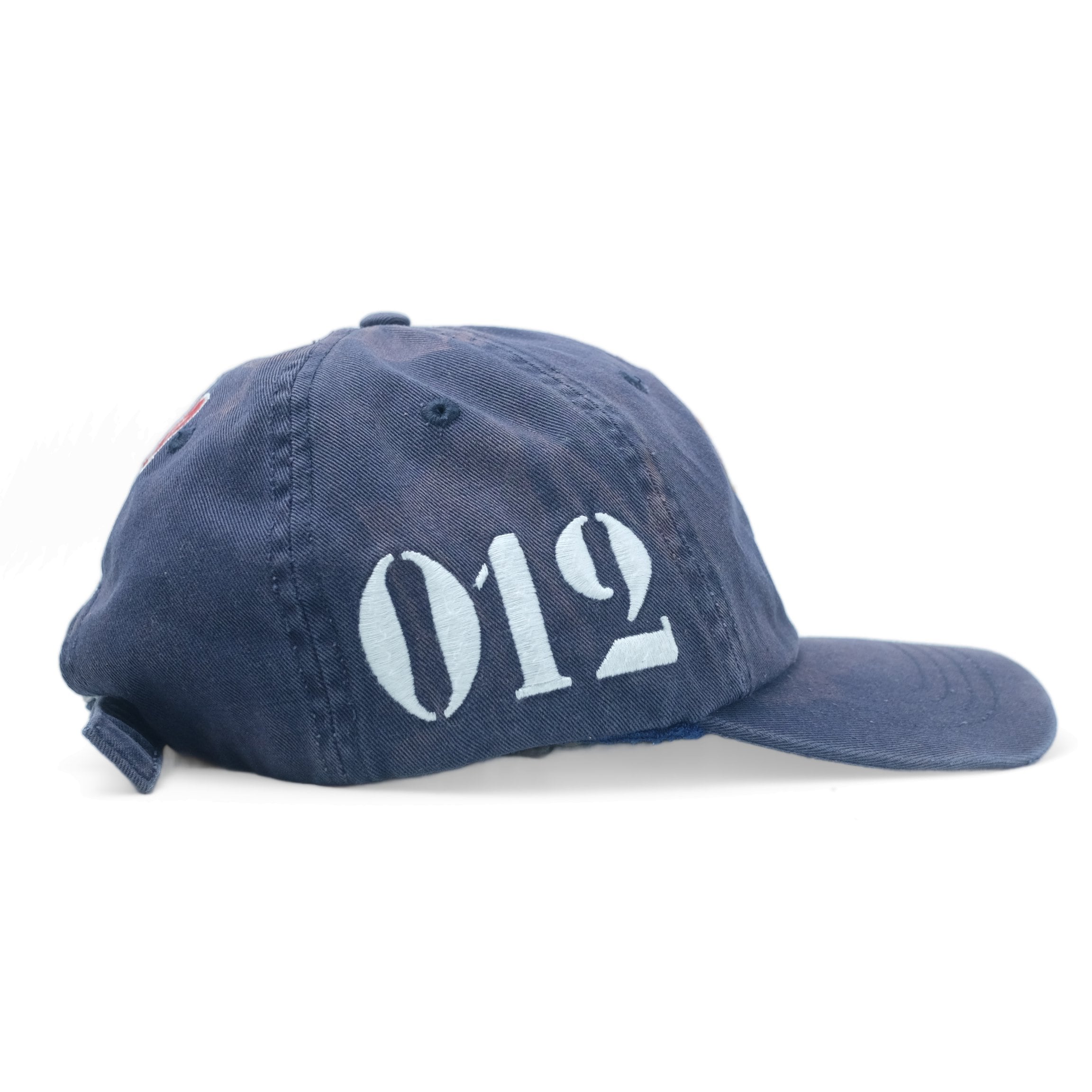 フェードしたネイビーが刺繍のデザインと相まって抜群の雰囲気を醸し出しています。